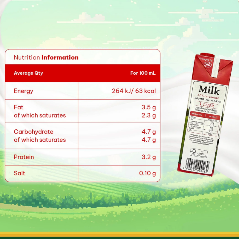 Giá trị dinh dưỡng trên mỗi 100ml sữa tươi Mlekovita UHT